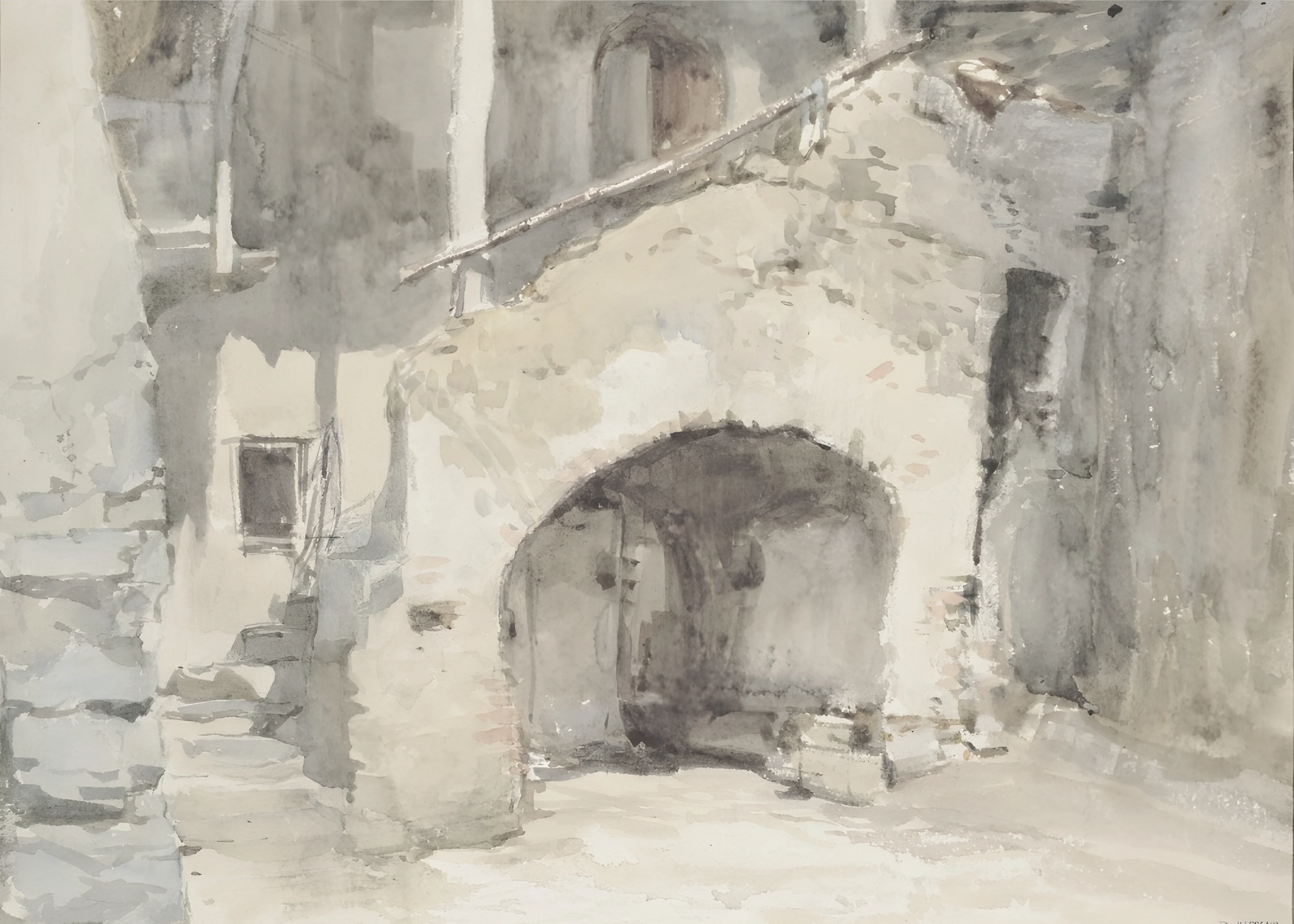 قوس عتيق مُصمم بألوان هادئة. ظلال ناعمة تُشكل حجرًا خالدًا. مثالي للممرات أو زوايا الفنون. أضف لمسة من السحر الكلاسيكي إلى منزلك.