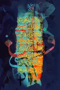 تركيبة راقية مستوحاة من آية الكرسي، مُقدمة بمسافات مدروسة وانسيابية. تفاصيل دقيقة وانتقالات لونية سلسة تضفي لمسة عصرية جذابة. مثالية لغرف النوم، وزوايا الصلاة، والاستوديوهات، أو أركان القراءة. قطعة مركزية مدروسة تدعو إلى التأمل والانسجام والقوة الهادئة. كل سطر مُقاس، ومُقصود، ومعبر بهدوء. مسافات متوازنة تحافظ على وضوح النص مع الحفاظ على التقاليد.