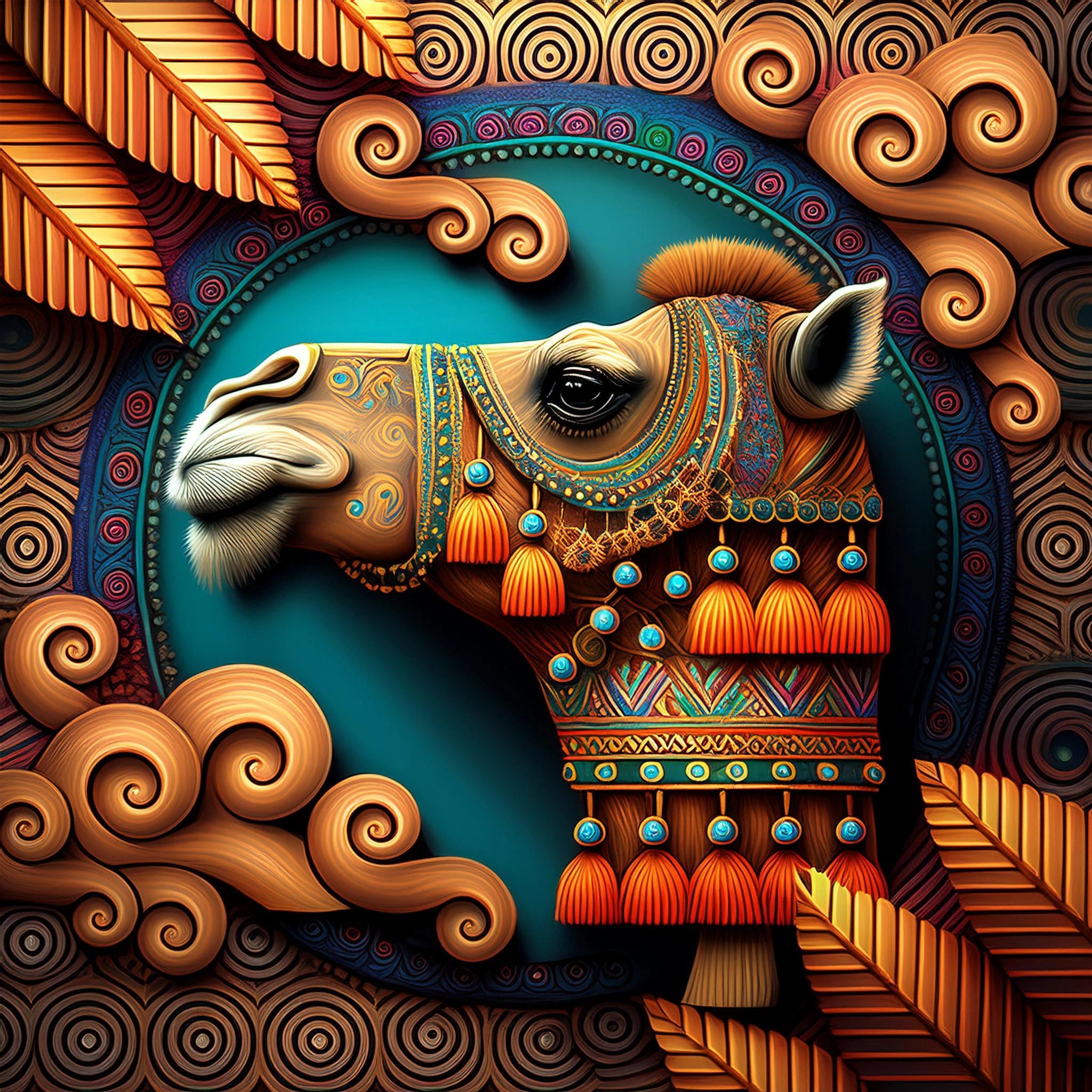 صورة جمل عند غروب الشمس عمل فني رقمي عالي الجودة من ArtSmileyDecor. قطعة أنيقة تُضفي على ديكورك لمسةً من الأناقة والرقي.