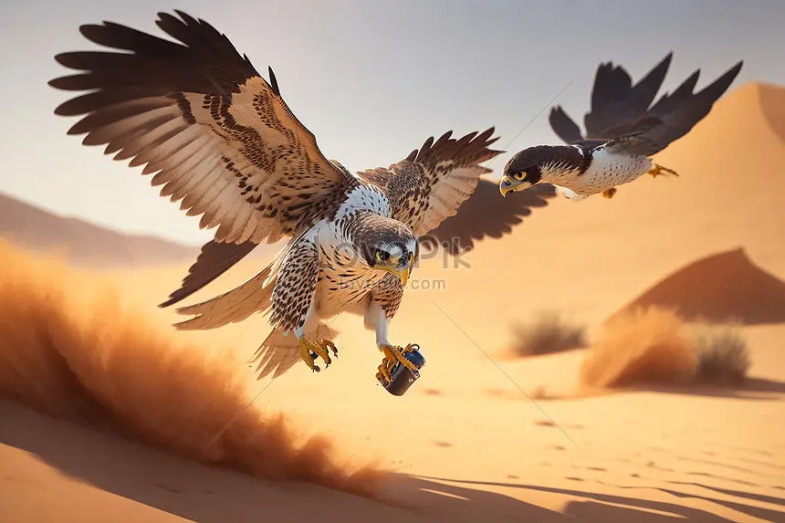 صقر يحلق في الصحراء هي قطعة فنية جدارية مميزة تتميز بمشاهد صحراوية وحيوانية مذهلة.
