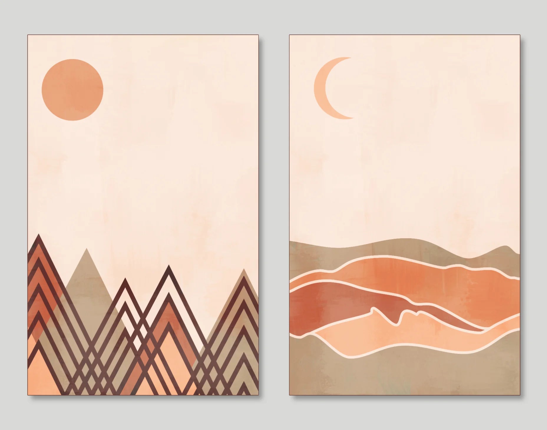 Minimalist Mountain Moon Design features minimal composition, creating clean balance and calm energy. Curated for modern living rooms, bedrooms, offices, and hospitality spaces.