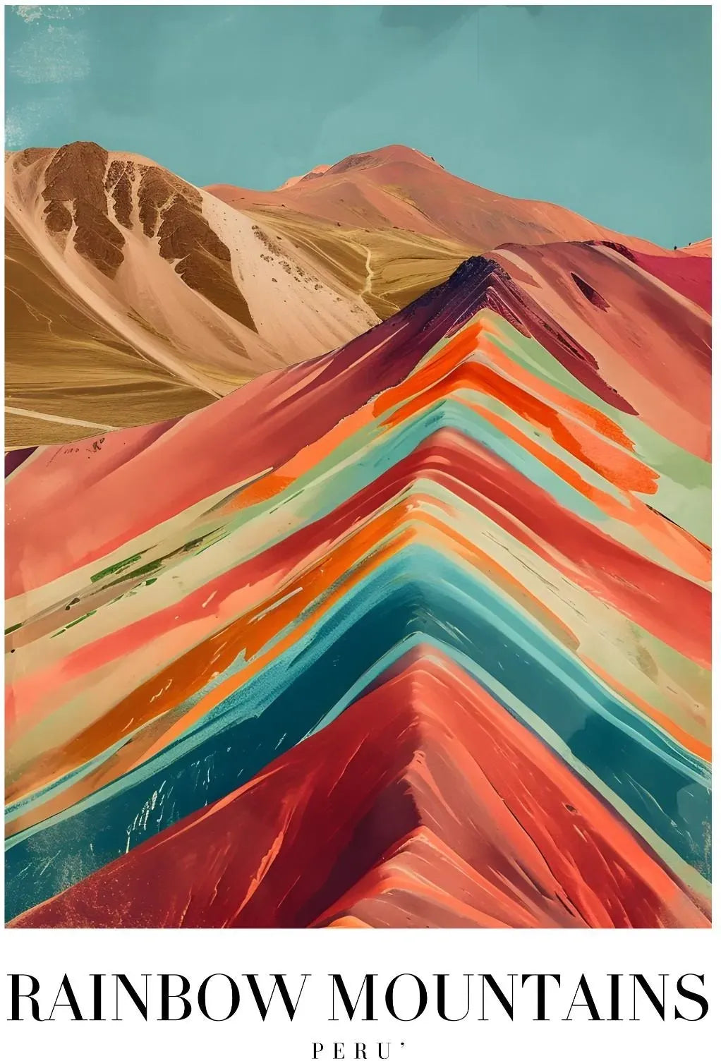 استمتع بالسحر الثقافي لجبال قوس قزح في بيرو من خلال هذه اللوحة الفنية المعبرة.