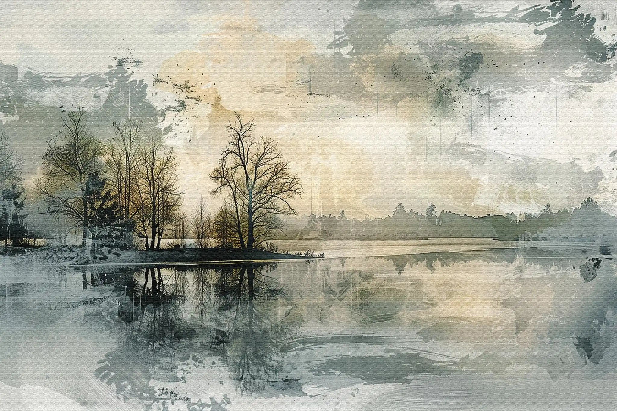 Misty Reflection Landscape is a unique modern art print from ArtSmiley Decor.