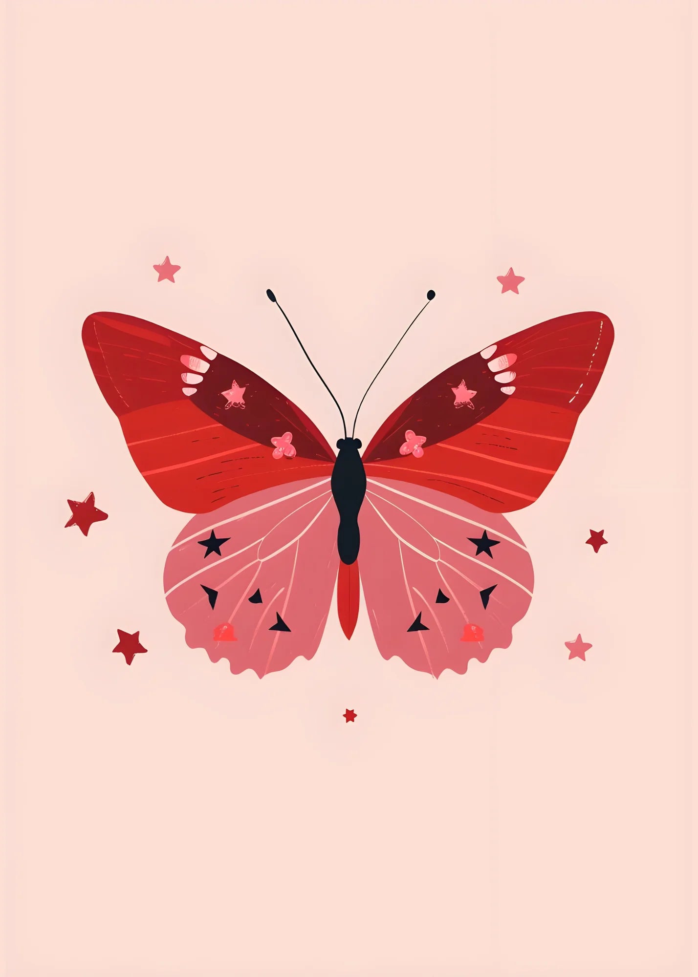 Red And Pink Butterflies With Stars 2 is a high-quality art print from ArtSmiley Decor.