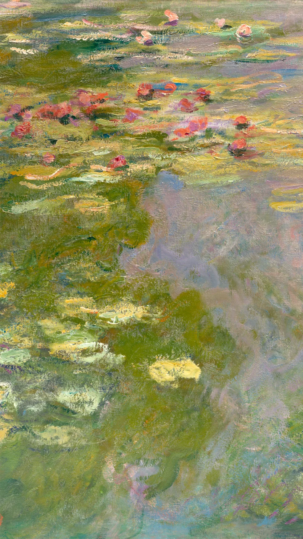 Soft brushstrokes paint drifting lilies. Gentle blues float on clear water. Perfect for tranquil rooms or baths. Bring pond calm to your space.