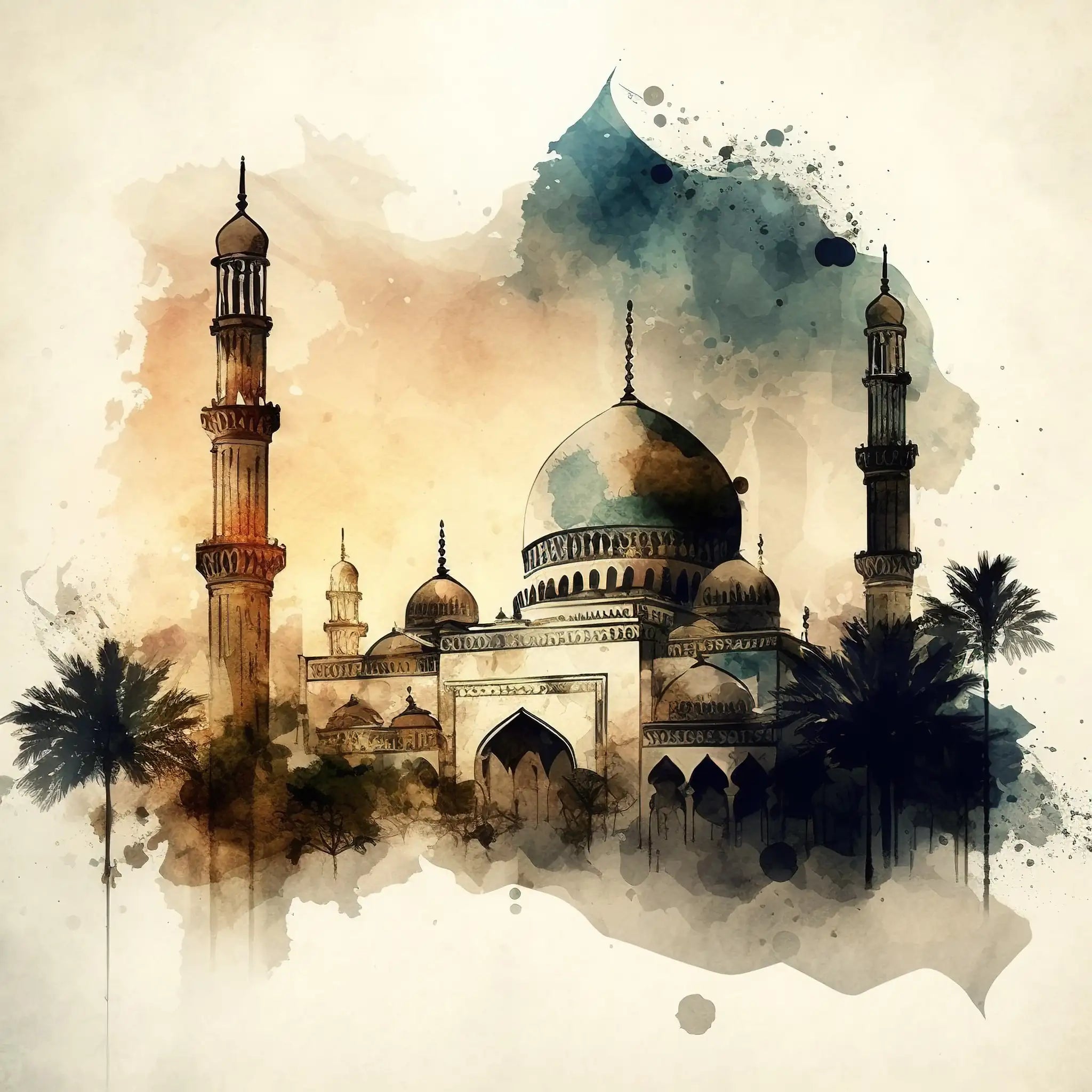 Watercolor Mosque Framed Canvas Artsmileydecor